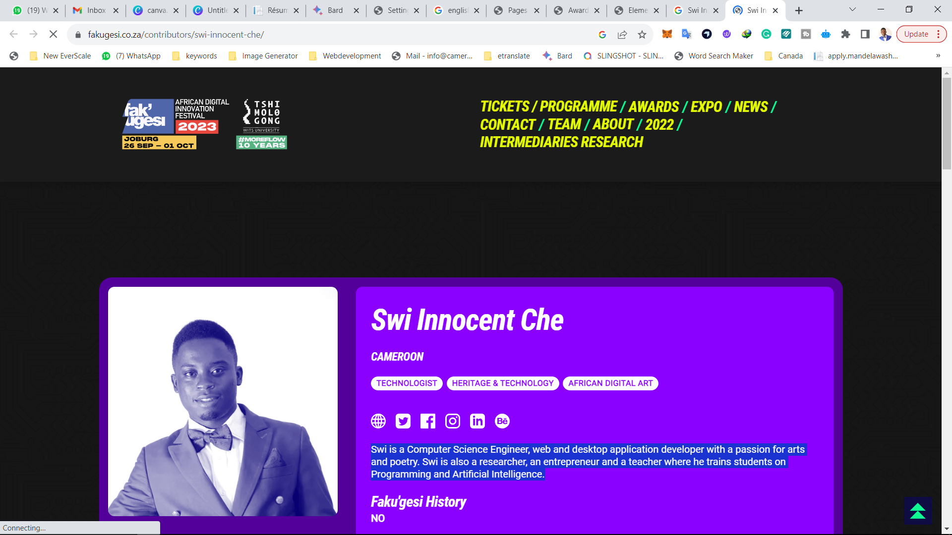 Swi is a Computer Science Engineer, web and desktop application developer with a passion for arts and poetry. Swi is also a researcher, an entrepreneur and a teacher where he trains students on Programming and Artificial Intelligence.